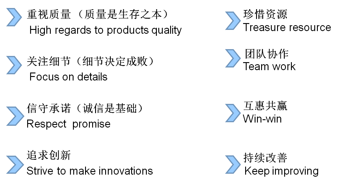 公司拥有高学历、高素质、经验丰富的各级管理人员,拥有标准化作业流程,完善的售前售后服务体系。多年来,企业一直以技术为核心,以为顾客提供高品质的产品、合理的价格、优质的服务为目标,不断追求进取,服务于客户。企业执行ISO9001质量保证体系,致力于将自身打造成一流的制造企业。